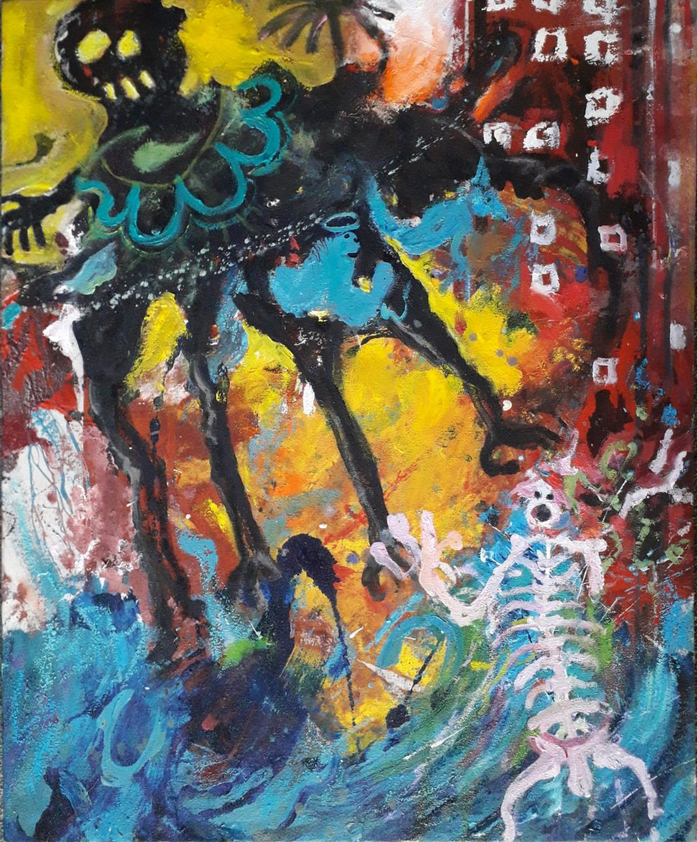 Les films catastrophes, 2018-2024, mixte sur toile, 59x49 cm
