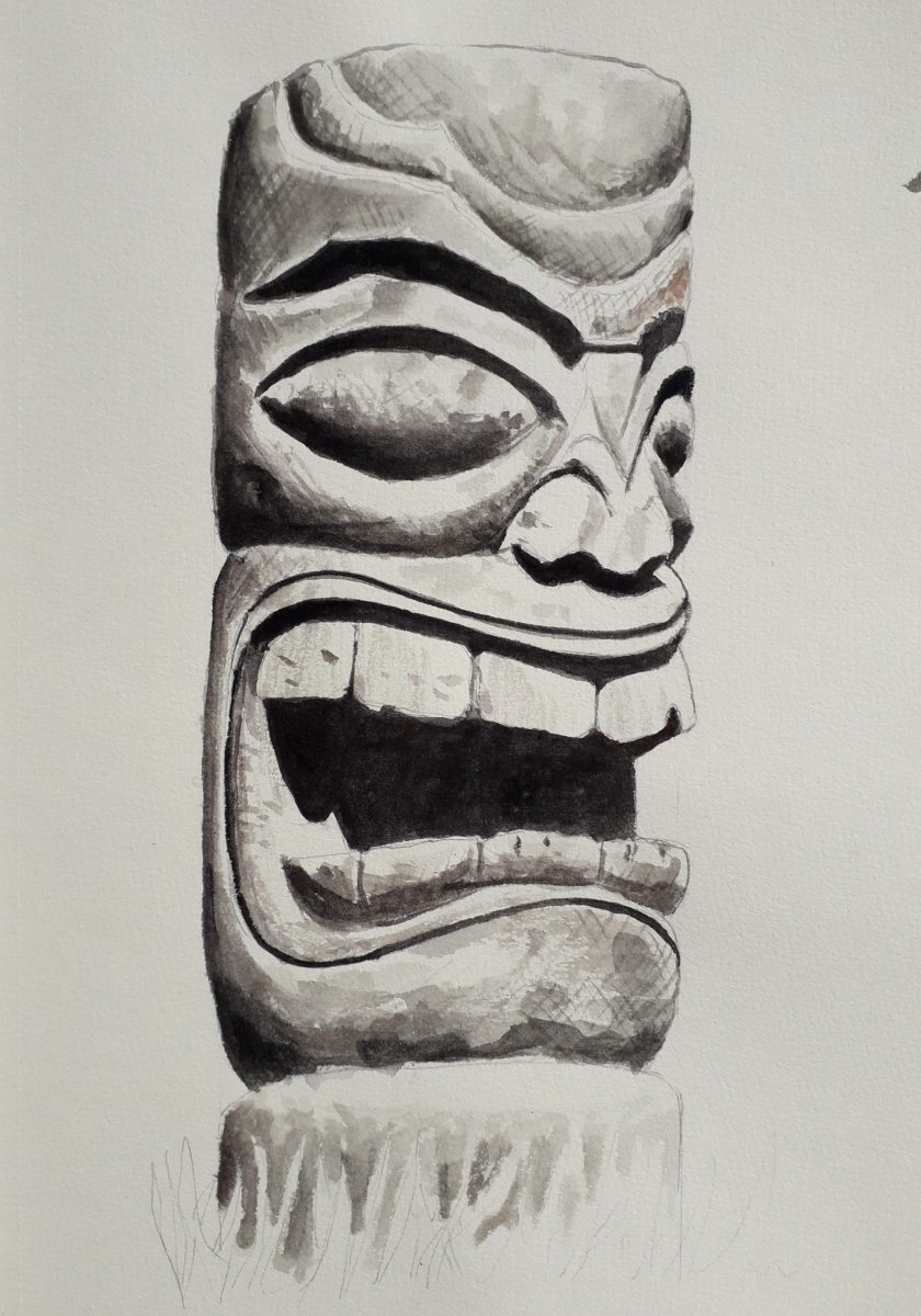 Pointe Venus 2 - Tahiti, 2024, mixte sur papier, 32x25 cm